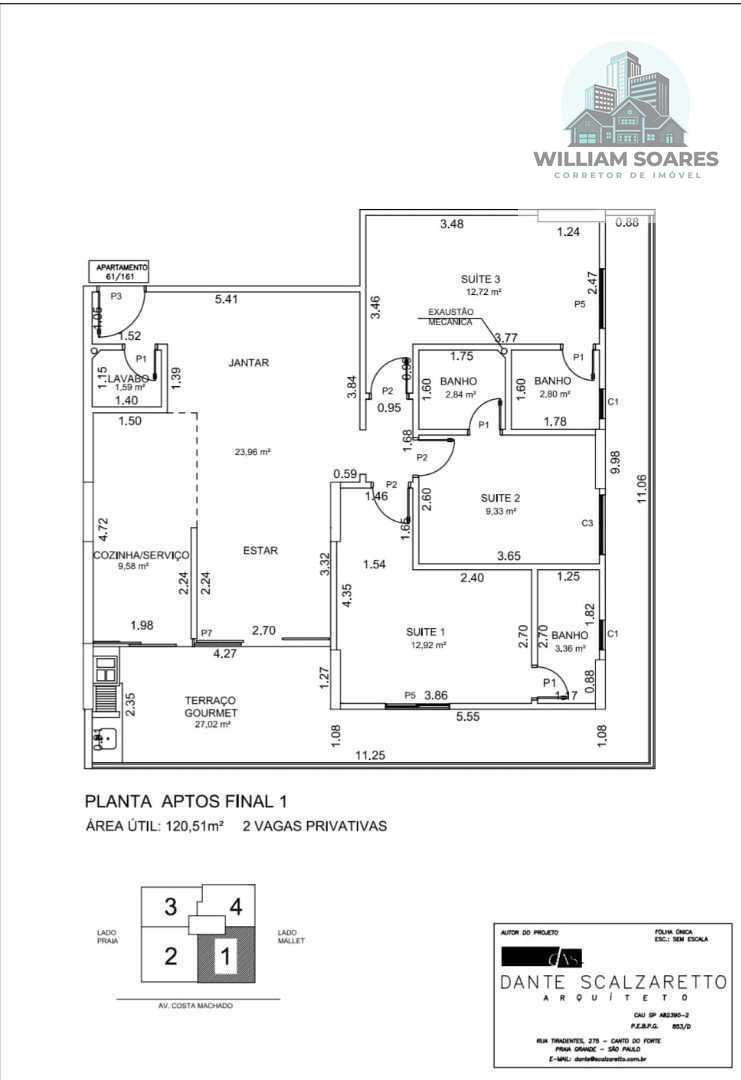 Área útil dos Aptos: 82,12m² à 120,51m²
