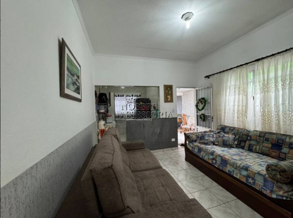 Descrições: CASA GEMINADA COM 02 DORMITORIOS, SALA, COZINHA, 02 BANHEIROS, QUINTAL E 02 VAGAS DE GARAGEM, 250 metros da praia .